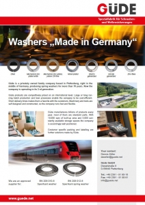 Güde was founded in 1948 and produces lock washers, wire-bended parts al well as screw and spindle fastening devices exclusively on self-made machines. Experienced employee, a certified tool shop and our own heat treatment guarantee maximum flexibility and quality.