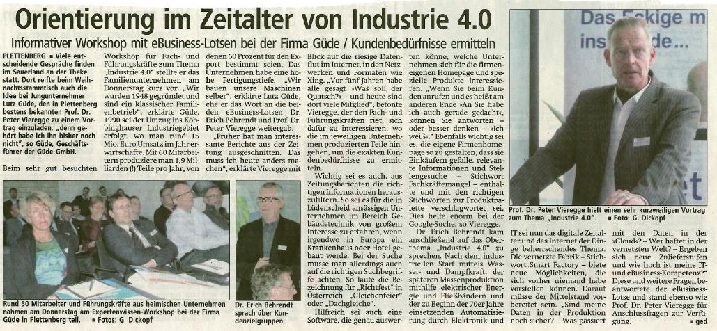 Workshop „Vertrieb, Kunden, Fertigung im Zeitalter von Industrie 4.0“