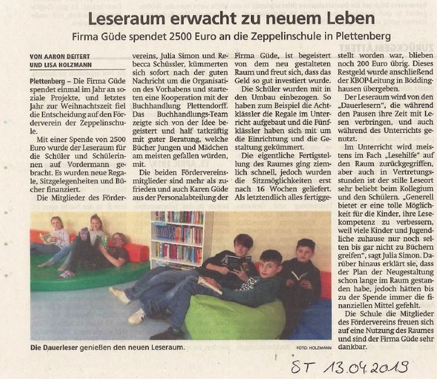 Güde GmbH spendet für neuen Leseraum der Zeppelinschule